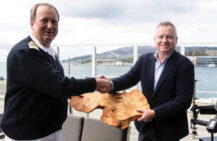 TASMANIAN Premier and Minister for Tourism and Hospitality, Jeremy Rockliff, greeted Disney Wonder as she sailed into Hobart on Wed on her first voyage into the state.